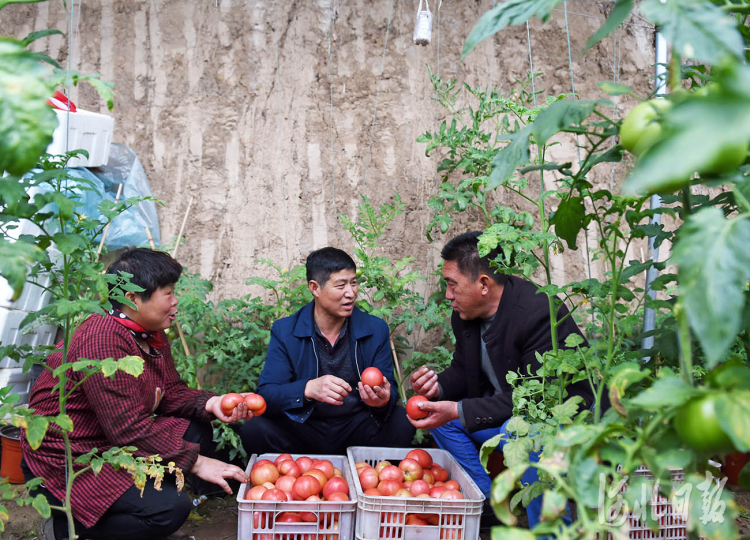2021年11月20日,河北省邢台经济开发区的农业技术人员在东北流村蔬菜大棚指导农民西红柿管理技术。