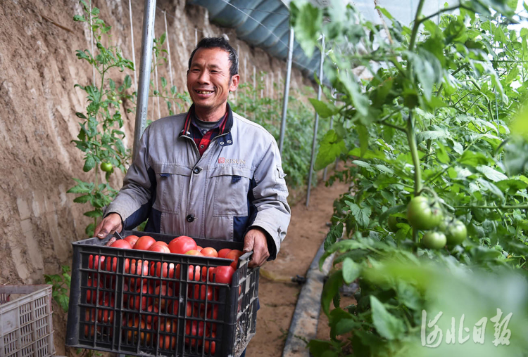 2021年11月20日,河北省邢台经济开发区留村街道办事处东北流村农民在蔬菜大棚收获西红柿。