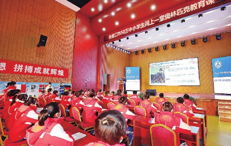 12月16日,在北京2022年冬奥会开幕式倒计时50天之际,张家口市教育局举办了“50万名中小学生同上一堂奥林匹克教育课”活动。活动共设1个主课堂和12000多个分课堂,全市近53万名中小学生通过多媒体教学设备听课。图为市青少年冬季奥林匹克运动学校(宣化二中)学生认真听课。陈飞摄影报道
