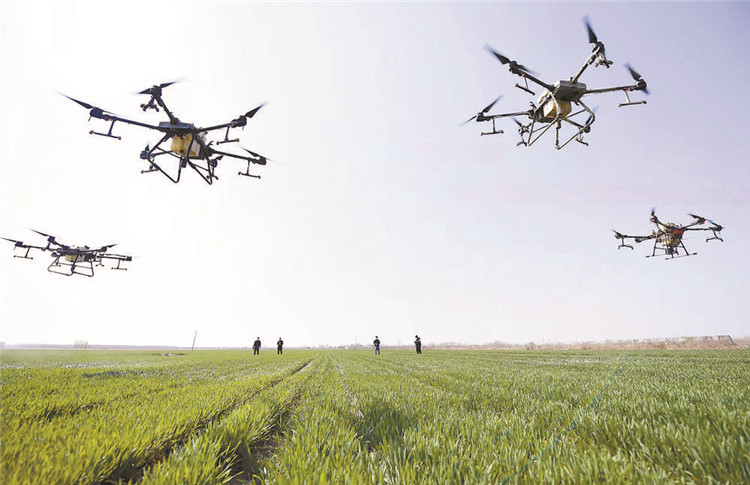 文安县赵各庄镇杨村,植保无人机正在进行飞防作业。 通讯员张艺典摄