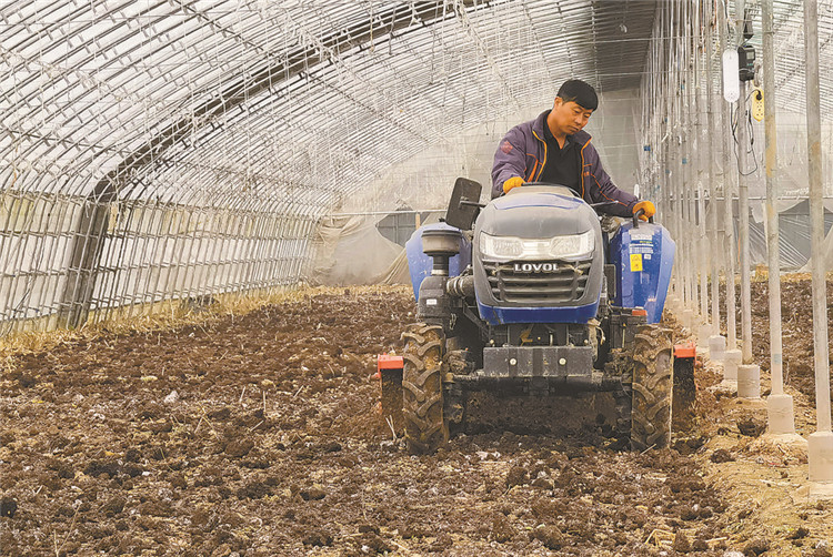 三河市李旗庄镇小庄子村村民,正在用旋耕机翻耕土地。 通讯员高澍摄