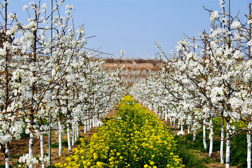 梨花油菜花竞相开放。刘顺利摄