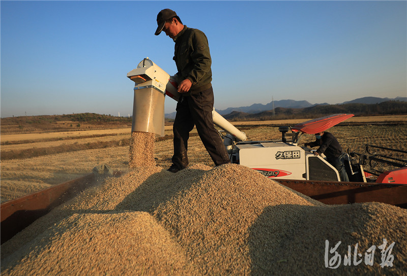 2021年10月23日,河北省迁西县农民抢抓农时收获水稻。河北日报记者 王爱军 摄影报道