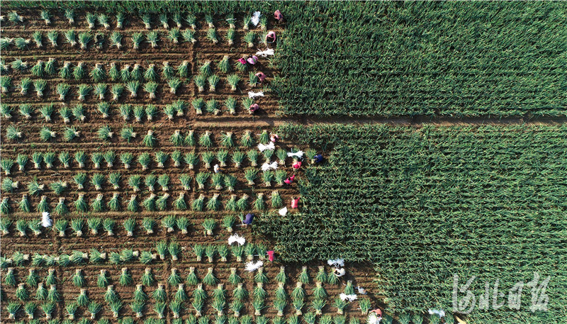2021年10月23日,农民在石家庄市无极县大陈镇高陵村田地收获大葱。通讯员 梁子栋 摄影报道