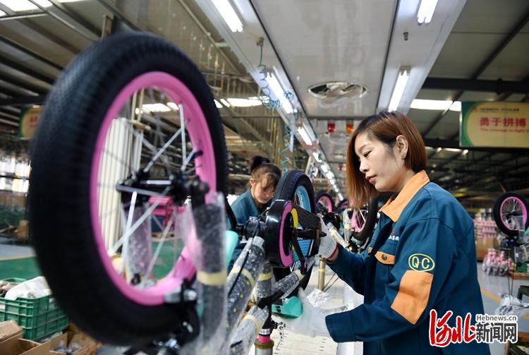 近日,位于平乡高新技术开发区的河北恒驰自行车零件集团有限公司工人在组装童车赶订单。河北日报记者赵永辉摄