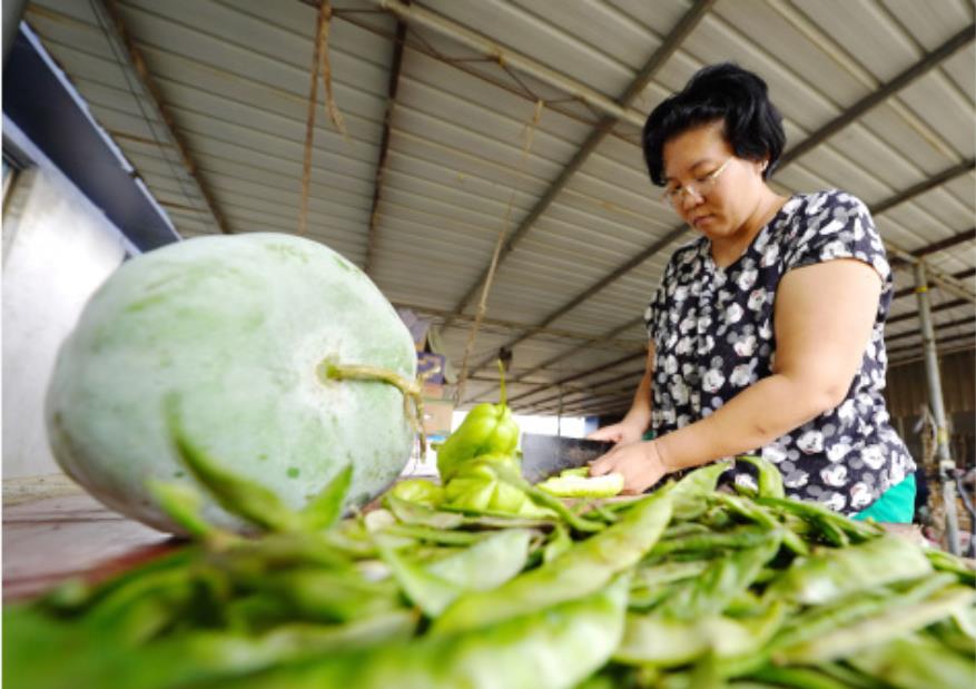 9月17日,郑林林在给骆驼准备蔬菜。 新华社记者杨世尧摄