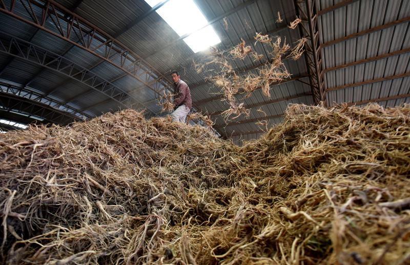宣化区河子西乡旧李宅村农民在分拣黄精。