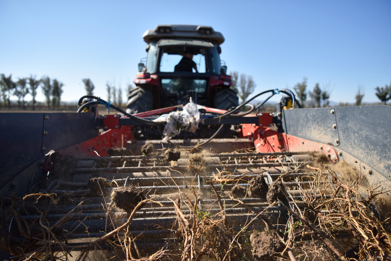 宣化区河子西乡旧李宅村农民在收获中药材。