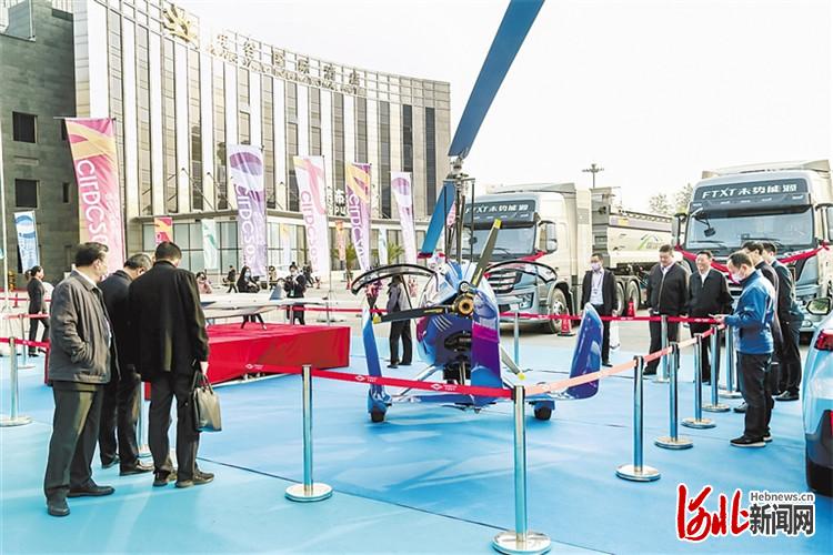 在保定市电谷国际酒店广场上,带有“氢能重卡”字样的5辆崭新大型卡车整齐排列,吸引了不少参会嘉宾围观。