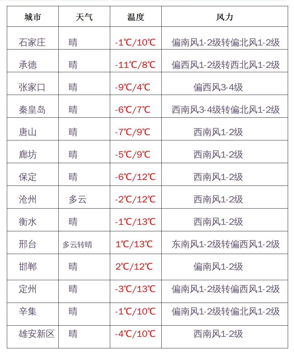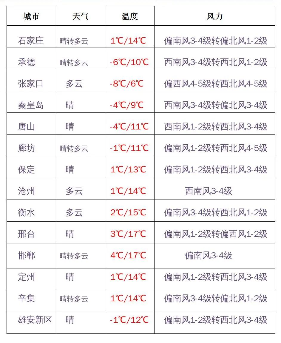 张家口、承德、秦皇岛最高气温将上升到6℃-10℃