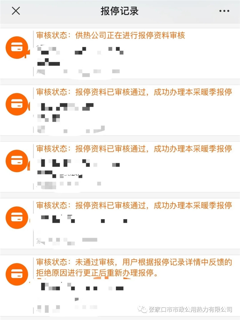 为方便用户足不出户办理报停业务,张家口市市政公用热力有限责任公司已开通微信公众号办理报停渠道。