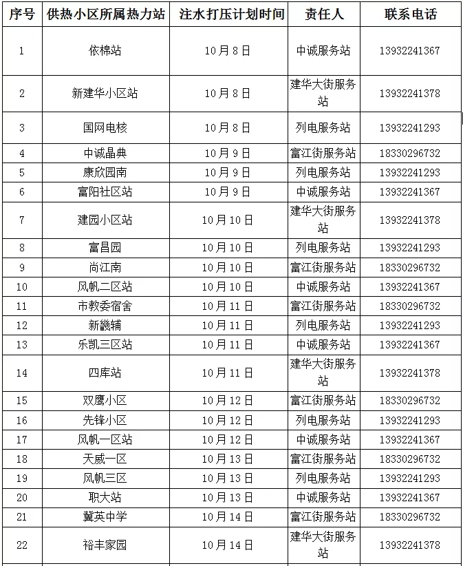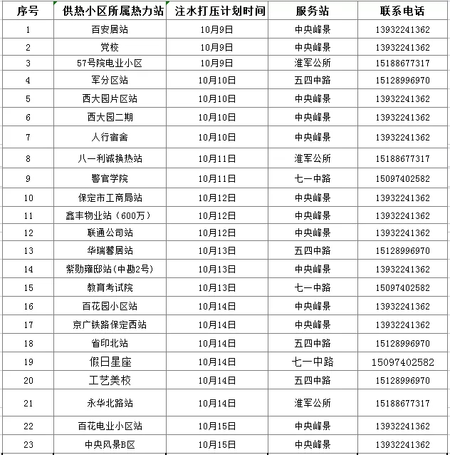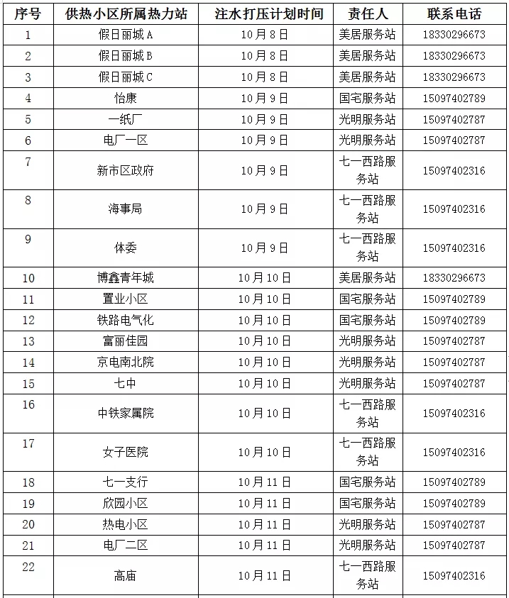 后续,我们将持续在公众号中发布最新注水试压时间计划,请各位热用户家中及物业留人,密切配合供热公司工作。