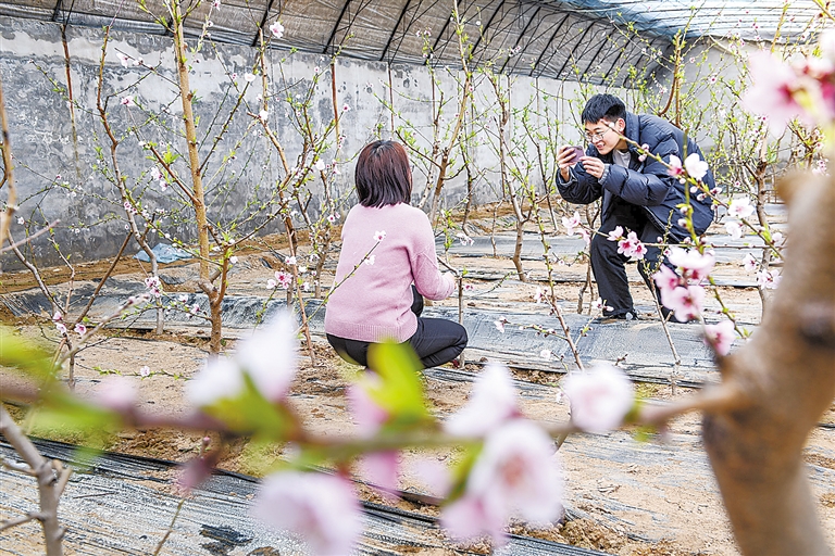 近日,走进涿州市东城坊镇三城村建红农业的油桃大棚,春天的气息扑面而来,翠绿的枝条上,成串的粉色桃花娇艳怒放,蜂箱里飞出的蜜蜂纷纷落在花蕊上辛勤劳作着。棚内桃树每年1月中下旬开花,4月初陆续结出果实,每个大棚油桃产量高达3000多斤。 近年来,涿州市依托全域旅游积极发展乡村观光采摘游,积极发展大棚水果种植,通过政策扶持、资金补助、技术指导等有效措施,在温室大棚内栽植油桃、草莓等品种,有效地带动了农民致富增收。(通讯员吴亚兰 刘永兴)