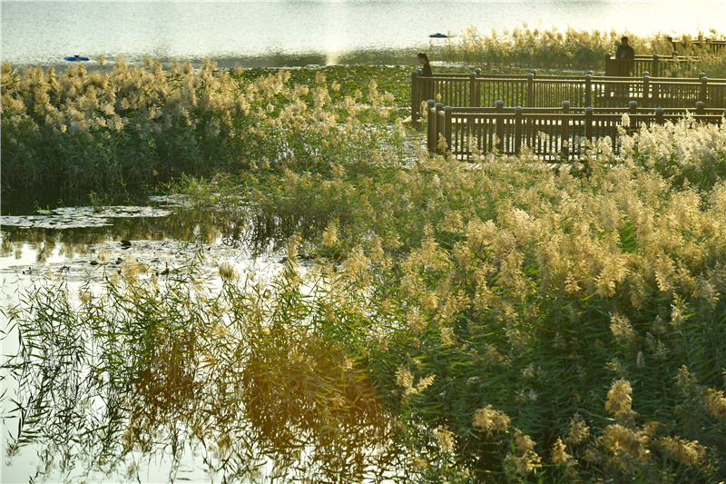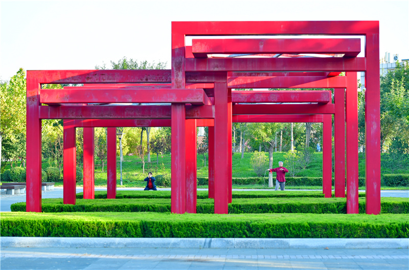河北省海兴县人民公园所在地原是一个废弃坑塘。2016年以来,海兴县依托原有地形地势,通过净化水源、栽植苗木、微地形处理等方式持续对这一区域进行综合整治,将这里打造成为占地近33公顷的综合性公园,为市民和游客提供了休闲游玩的好去处。新华社记者 牟宇 摄