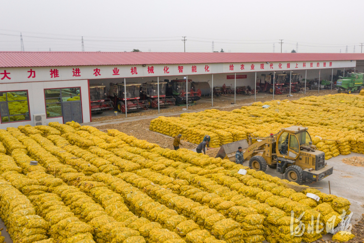 2021年10月20日,河北省赵县光辉农机服务专业合作社人员搬运玉米。