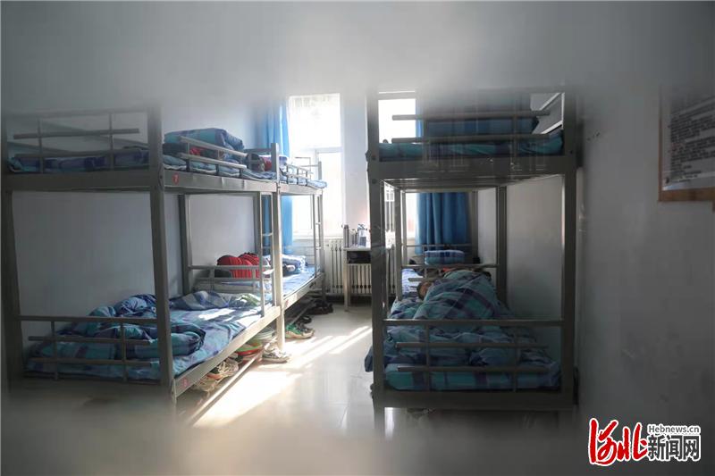 图为首批进城读书的乡村小学学生在河北省张家口市桥东区第21中学提供的宿舍内午休。