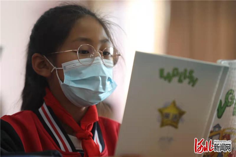 图为首批进城读书的乡村小学学生在河北省张家口市桥东区胜利中路小学的课堂里朗读英文。