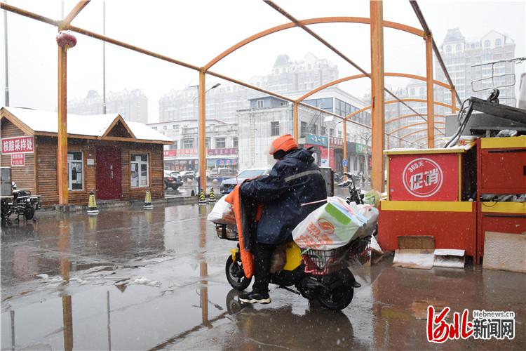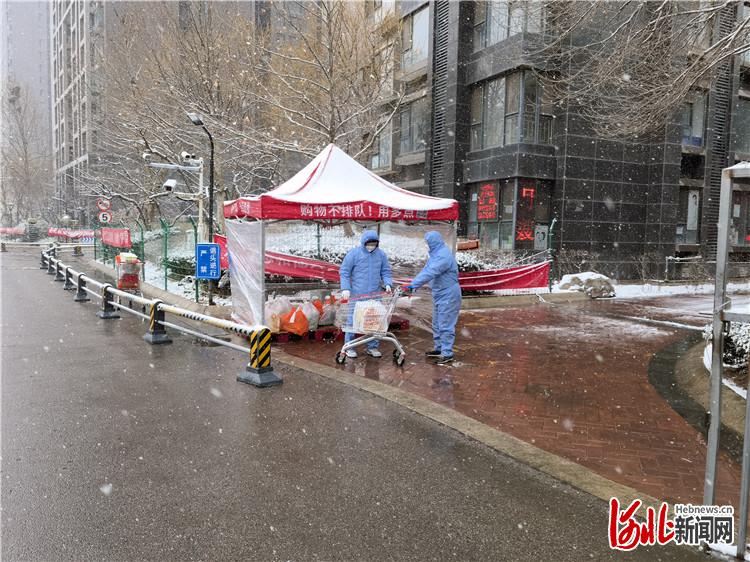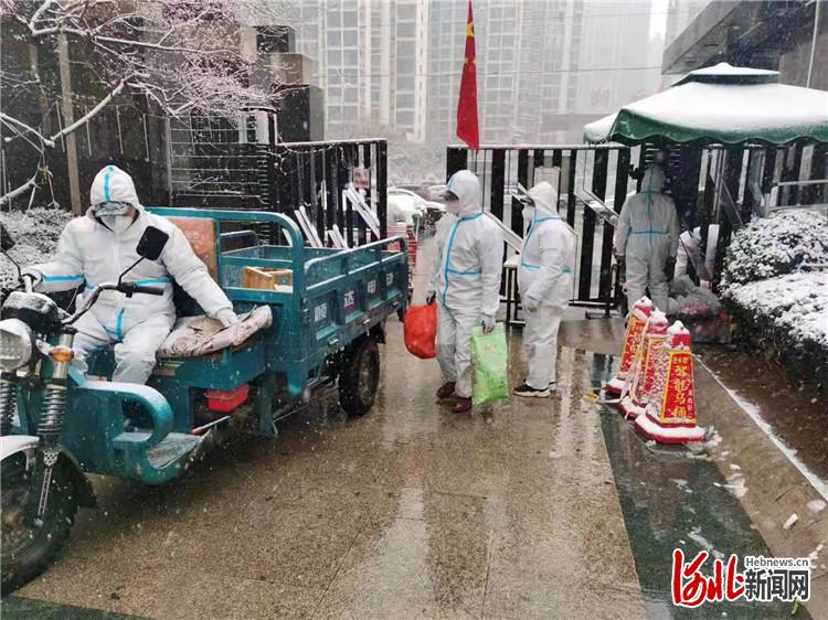 河北新闻网讯(通讯员刘伟、马皓琪、高澍)3月17日,三河市迎来新一轮降雪,气温骤降。漫天飞雪没有阻断三河市的生活物资保障,广大志愿者和社区工作者们头顶冰冷的雪花,全心全意为封闭管理小区内的居民买菜、送药,运输生活物资。
