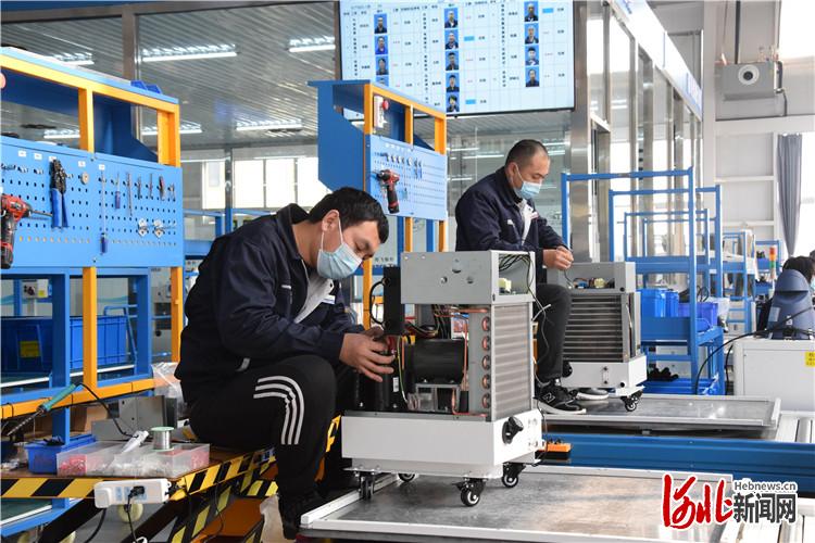 图为三河同飞制冷股份有限公司扩大再生产,组织工作人员在生产线组装机械。高澍摄