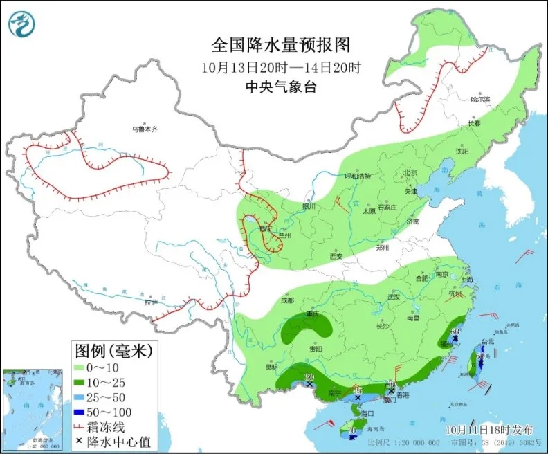 13日至16日,中东部大部地区将自西向东出现一次弱降水过程。其中,13日至15日,青海东部、甘肃中东部、宁夏南部、内蒙古中北部、黑龙江西北部有小到中雪或雨夹雪,局地有大雪。