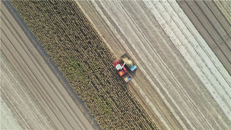 金秋时节,冀东地区秋收作物进入大面积收获期。唐山市丰南区的农户们抢抓晴好天气,忙着收获、晾晒农作物。新华社发(李秀清 摄)