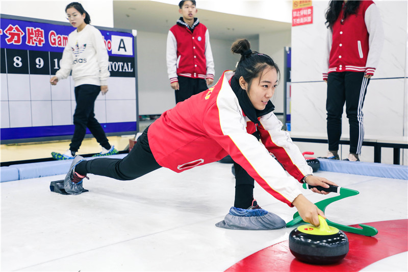 河北师范大学学生在陆地冰壶比赛中。河北师范大学供图
