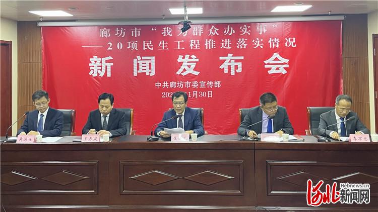河北新闻网11月30日讯(通讯员贺娟 河北日报记者孙占稳)笔者从今天的廊坊市“我为群众办实事”——20项民生工程推进落实情况新闻发布会上获悉,在廊坊市委、市政府坚强领导下,廊坊市直各牵头部门认真贯彻落实省市部署,精心谋划、迅即启动、强力推进20项民生工程。截至目前,已有18项完成年度目标任务,向百姓交出了一份暖心答卷,让人民群众拥有更多的获得感、幸福感、安全感。