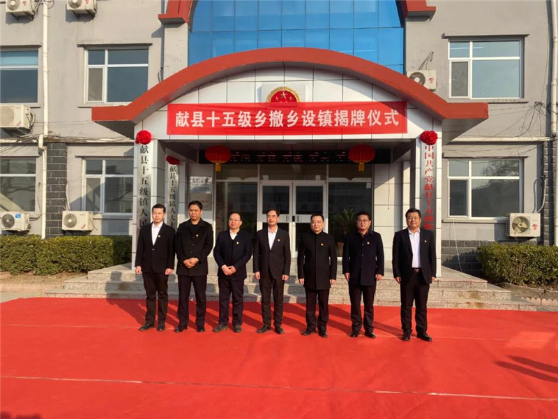 2022年1月1日,献县十五级镇举行“撤乡设镇”揭牌仪式,会上宣读了《献县人民政府关于同意撤销十五级乡设立十五级镇的批复》。